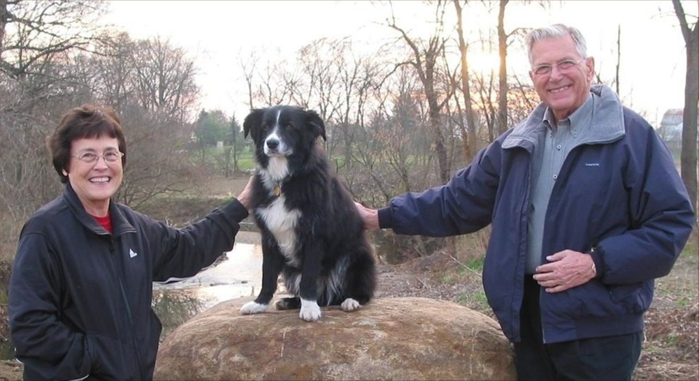 Joyce, Bill, and their beloved dog Andy next to Sycamore Creek near the current Hague Preserve